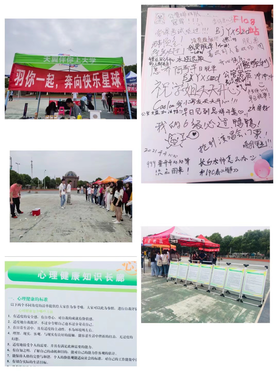 为进一步开展党史学习教育,加强思想引领,鼓励同学们走下网络、走出宿舍、走向操场,享受户外活动的快乐与轻松,释放学业压力,培养良好的身心健康素质,在5•25 全国大学生心理健康日来临之际,英国365集团公司于5月20日下午在北区操场举办了“管风情”——公管杯趣味户外嘉年华系列活动。本次活动内容丰富、形式多样,融入了“建党百年”“心理健康建设”“社团展示”三个活动板块,共吸引了本研在内的200多名同学报名参加。