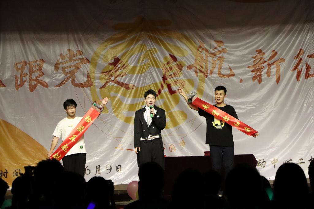 奖项抽出后,2名幸运获奖同学上台领取并和张书记合影留念。